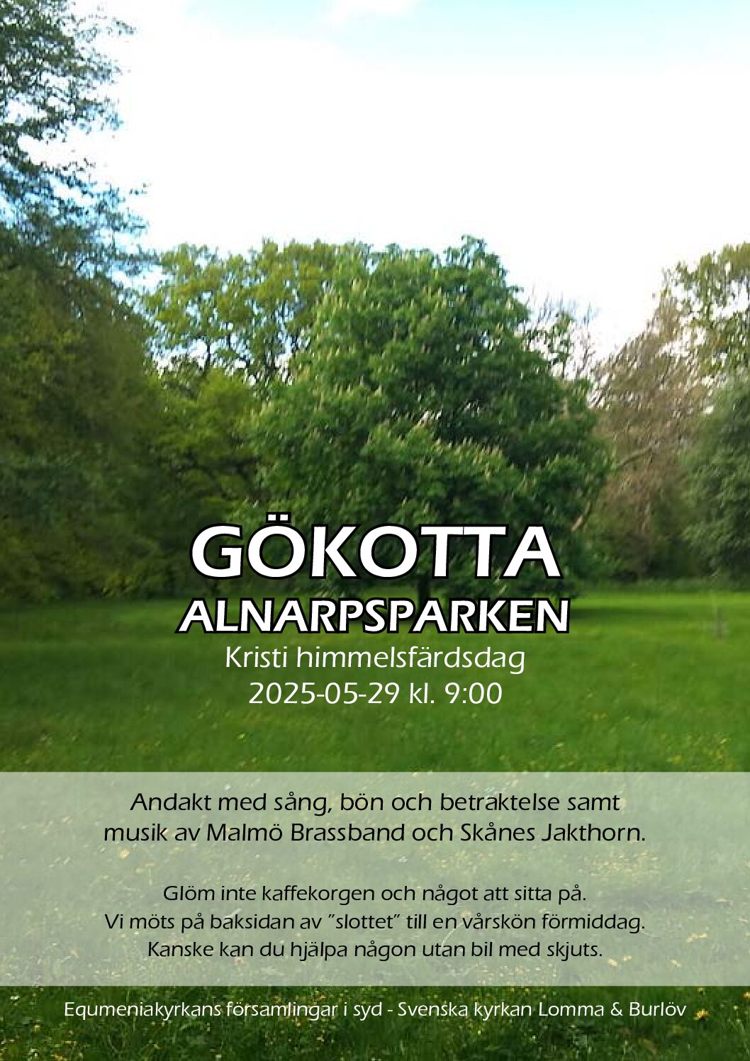 Vi möts på baksidan av ”slottet” till en vårskön förmiddag. Kanske kan du hjälpa någon utan bil med skjuts.